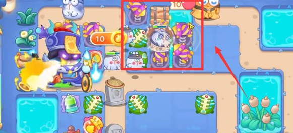 4、第四波我们往右开图,小心打更兔,把炮塔放在经过的位置。