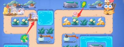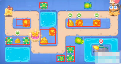 3、花朵打完放置火炮,继续清理障碍物,顺序如下图。