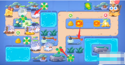 2、开始的时候左边一个风扇打怪,右上一个瓶子炮开图,瓶子炮先打下面的花朵。