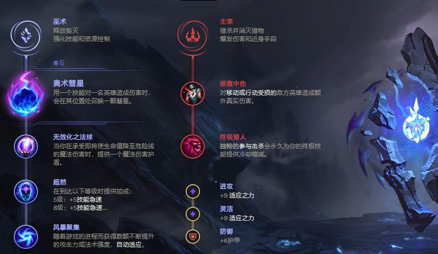 (1)主系符文:巫术+奥数彗星+无效化之法球+超然+风暴聚集;